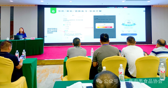 培训班第一阶段为线下教学,于2024年10月7日在南宁举行,由广西肉类食品行业人才库资深专家和南宁市悦牧职业技能培训学校老师分别进行授课、划重点。培训班开班仪式上,广西肉类食品协会秘书长张浩、广西悦牧生物科技有限公司总经理潘杰分别为培训班学员作了动员,提出了学习要求。