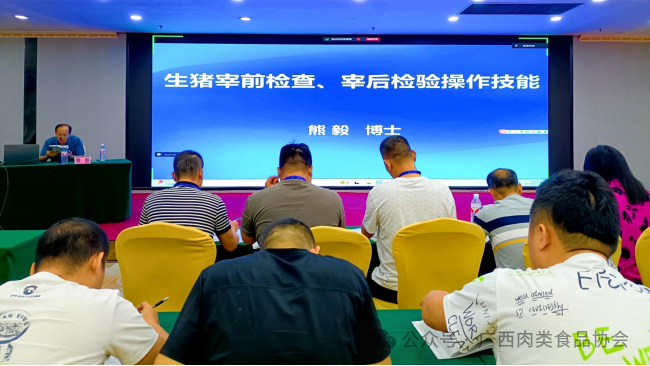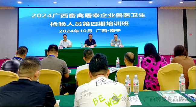 根据自治区农业农村厅《2024年第二次全区生猪屠宰兽医卫生检验人员考核公告》,为了提高参加考核人员专业知识水平,广西肉类食品协会和 广西悦牧生物科技有限公司联合举办第四期广西畜禽屠宰企业兽医卫生检验人员资质核定考试考前培训班。培训班是根据农业农村部部署、中国动物疫病预防控制中心(农业农村部屠宰技术中心)组织的全国兽医卫生检验人员资质核定考试要求,对从事畜禽屠宰企业肉品检疫检验工作的兽医卫生检验人员进行资质核定考试前的培训。